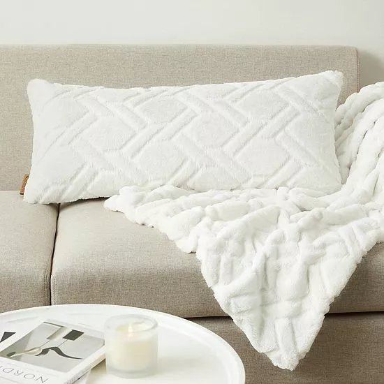 Create a luxury cozy space with the trendy Koolaburra by UGG Candice Faux Fur Bolster Throw Pillow.
